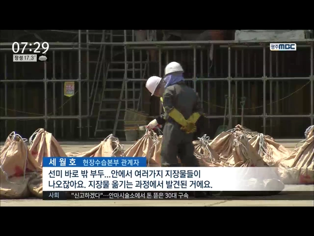 ◀ANC▶ 세월호 수색이 이뤄지고 있는 목포신항 부두 바닥에서 치아 1점이 추가로 발견됐습니다. 그동안 수색하지 못한 화물칸도 선미를 크게 절단해 화물을 꺼내는 방식으로 수색이 이뤄질 것으로 보입니다. 김진선 기자가 보도합니다. ◀END▶ ◀VCR▶ 치아 한 점이 추가로 발견된 곳은 선체 외부, 선미와 가까운 부두...