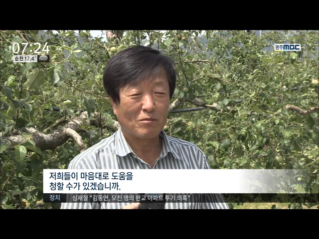 (앵커) 요즘 농가만큼 힘든 곳이 있을까요? 우박과 가뭄에다 조류 인플루엔자까지 한꺼번에 일이 터지면서 어떻게 손을 쓰지 못하고 있습니다. 특히 우박 피해 농가의 경우 인력난으로 복구 작업에 엄두를 내지 못하고 있습니다. 김인정 기자입니다. (기자) 전남 도내에선 우박에 맞아 1천 5백여 헥타르에 걸쳐 과수 피해가...
