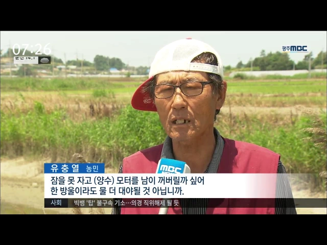 ◀ANC▶ 가뭄이 계속되고 있는 가운데 시원한 비 소식은 오늘도 들리지 않고 있습니다. 농민들의 가슴이 타들어가고 있습니다. 박영훈 기자가 보도. ◀END▶ 갓 심은 콩 밭에 나온 농민. 살수장치인 '스프링클러'를 뽑아 이리저리 옮기고 있습니다. 물이 부족해 한 곳에 오래 뿌릴 수 없기때문입니다. 전남지역 모내기는 ...