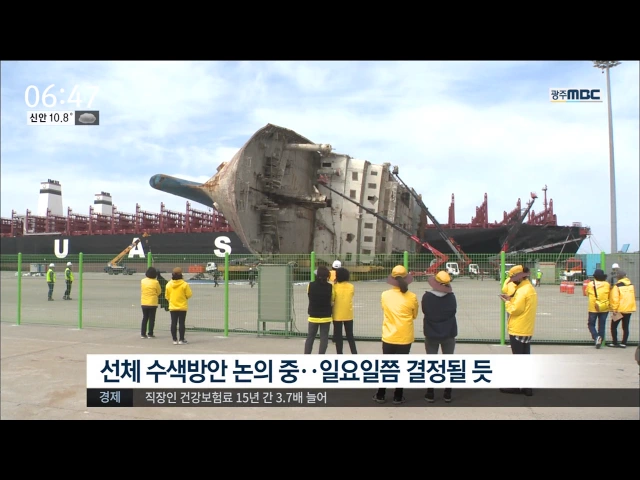 ◀ANC▶ 녹슨 몸체를 드러낸 세월호 선체에 대한 세척 작업이 이틀째 진행되고 있습니다. 다음 주, 선체 수색을 앞두고 수색 방식에 대한 논의도 계속되고 있습니다. 김진선 기자... ◀END▶ ◀VCR▶ 객실이 있는 세월호 3,4층 뱃머리가 진흙과 녹을 벗고 흰 벽면을 드러냈습니다. 고가 사다리를 탄 작업자들이 여러 곳...