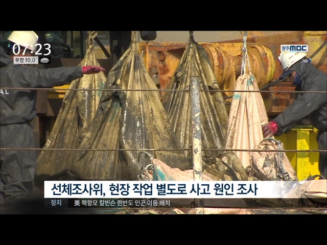 ◀ANC▶ 세월호가 옮겨진 목포신항은 국내는 물론 전세계적으로 관심이 집중되고 있습니다. 그런데 해양수산부의 무책임한 발표 때문에 목포신항 이미지가 크게 추락하고 있습니다. 무슨 사연인지 김양훈 기자가 취재했습니다. ◀END▶ 세월호 선수와 선미 쪽에서 휘어짐 현상이 발견됩니다. 해양수산부는 침몰 당시부터 ...