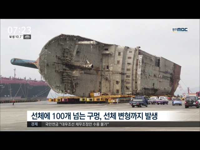 ◀ANC▶ 세월호 육상 거치를 앞두고 선체 변형이 상당 부분 일어난 것으로 확인됐습니다. 그동안 확인되지 않았던 세월호 선체 변형이 왜 그리고 언제 발생했는지 의문입니다. 김양훈 기자가 취재했습니다. ◀END▶ 세월호가 부두에 세로로 길게 누워 있습니다. 당초 객실 부분이 육지 쪽을 향하도록 90도 회전할 예정이...
