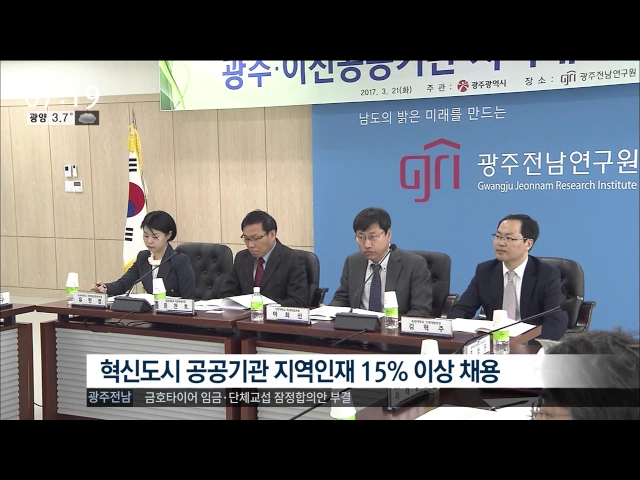 (앵커) 광주전남 출신 인재들이 혁신도시 공공기관에 취업할 수 있는 길이 확대됩니다. 공공기관들이 앞으로 지역인재 채용비율을 15% 이상으로 더 늘리기로 했습니다. 이계상 기자... (기자) 한국전력과 농어촌공사 등 빛가람혁신도시 공공기관의 인사담당부서장들이 한 자리에 모였습니다. 이들은 신규 채용을 할 때 지역...