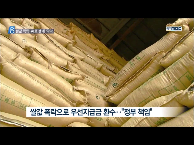 (앵커) 요즘 상황에서 어렵지 않은 곳이 없겠지만 농촌 사정도 힘겹기는 마찬가집니다. 설 명절을 앞두고 농촌 마을에 한숨소리가 커지고 있습니다. 쌀값 폭락에다 조류 인플루엔자가 확산된 상황에서 농민들은 명절 준비는 커녕 생계조차 막막하다는 하소연을 하고 있습니다. 이계상 기자.. (기자) 농가에서 보관중인 나락...