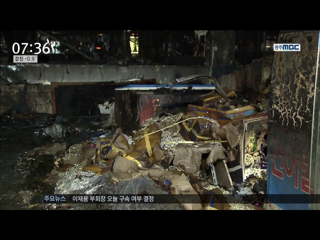 ◀ANC▶ 여수 수산시장에 설치된 스프링클러가 화재 당시 일부 작동하지 않은 것으로 확인됐습니다. 대형 피해를 막기 위해서는 추가적인 소방시설이 필요하다는 목소리가 높습니다. 보도에 문형철 기자입니다. ◀VCR▶ [C/G 1 - 우측 상단] 수산시장에서 불이 시작된 시각은 새벽 2시 21분./// [C/G 2 - 우측 상단] 13분...