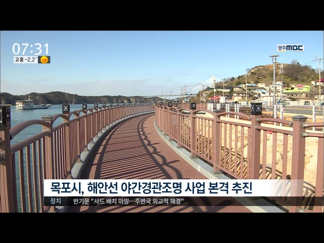 ◀ANC▶ 목포시가 항구 도시에 걸맞게 바다와 어우러진 해안선 야간경관 조명사업에 나섭니다. 목포대교와 대반동 일대를 국제적인 '빛'의 관광명소로 만들겠다는 구상입니다. 김양훈 기자가 취재했습니다. ◀END▶ 두 마리 학이 눈부신 자태를 뽐내며 날개짓 하는 목포대교 다리에서 빛나는 불빛이 바다에 반영되면서 아...