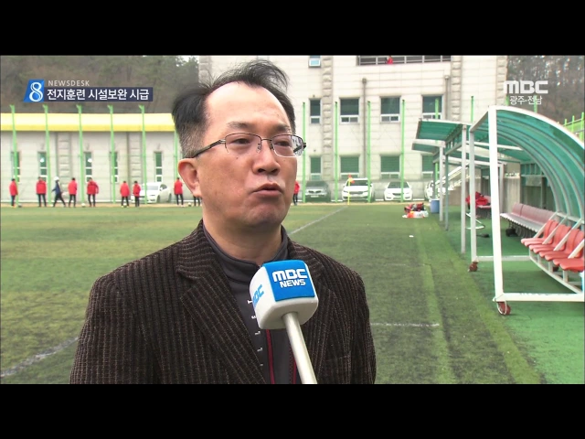 ◀ANC▶ 전남이 겨울철 전지훈련 명소로 각광받으면서 운동팀 방문이 잇따르고 있습니다. 따뜻한 기온과 풍부한 음식, 관광자원 등은 강점이지만, 천연잔디 구장이 부족해 시설보완이 시급합니다. 신광하 기자가 보도합니다. ◀VCR▶ 중학교 축구팀이 실전과 같은 경기로 호흡을 맞추고 있습니다. 또 다른 팀들은 이어질 ...