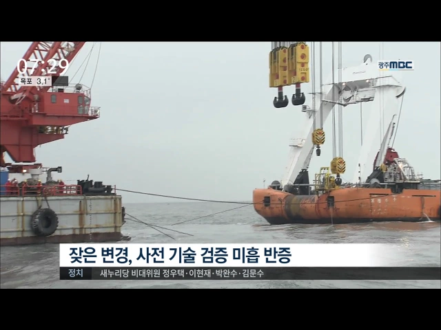 ◀ANC▶ 정부 계획대로라면 지난해 여름이면 모습을 드러냈어야 할 세월호 선체는 여전히 바닷속에 있습니다. 봄이 되면 인양을 끝내겠다고 하는데, 지금까지 그랬듯 '날씨'라는 큰 변수를 안고 있습니다. 양현승 기자입니다. ◀END▶ ◀VCR▶ 당초 해양수산부가 장담했던 '세월호 선체 인양 시점'은 지난해 7월이었습니...