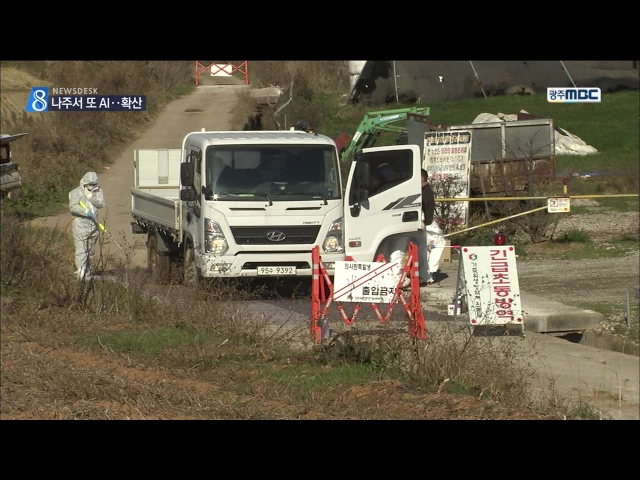 (앵커) 국내 최대 오리 산지인 나주에서 또 다시 AI가 발생해 농장간 수평감염 우려가 확산되고 있습니다. 정부는 AI 위기 경보를 최고 수준인 '심각' 단계로 격상했습니다. 정용욱 기자입니다 (기자) 1만 7천마리를 사육 중인 나주의 한 육용오리 농장에서 예방적 살처분이 이뤄집니다. 간이검사 결과 H5형 AI 바이러스가 ...