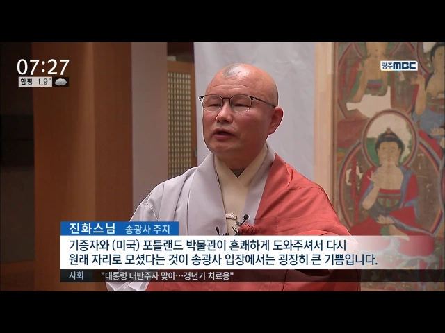 ◀ANC▶ 40여 년 전 도난당했던 '송광사 오불도'가 원래 소장처인 순천 송광사로 돌아왔습니다. 송광사 도난 문화재가 회수된 것은 2천년대 들어 이번이 처음인데, 송광사 측은 보물지정을 추진할 예정입니다. 보도에 문형철 기자입니다. ◀VCR▶ 다섯 부처의 모습을 담고 있는 '송광사 오불도'입니다. 1725년 조선시대 ...
