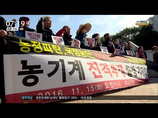 ◀ANC▶ 박근혜 대통령의 퇴진을 요구하는 농민들이 땅끝 해남에서 농기계를 몰고 청와대로 향하고 있습니다. 나라의 위기마다 농민들이 나섰다며, 경남 진주와 해남에서 두 갈래로 출발해 지역 곳곳에서 농민들이 합류할 예정입니다. 김진선 기자입니다. ◀END▶ ◀VCR▶ 대형 트랙터를 선두로 화물차들이 도로를 행진...