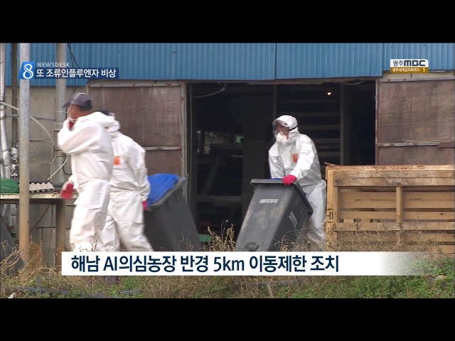 ◀ANC▶ 조류인플루엔자 양성 반응을 보인 해남 양계장의 닭 4만여 마리가 살처분되고 인근 농장에는 이동제한 조치가 내려졌습니다. 폐사한 닭에서 검출된 바이러스는 사람에게도 감염될 수 있는 H5N6형으로 확인돼 질병당국이 크게 긴장하고 있습니다. 신광하 기자가 보도합니다. ◀VCR▶ AI의심증세로 닭 2천 마리가 ...