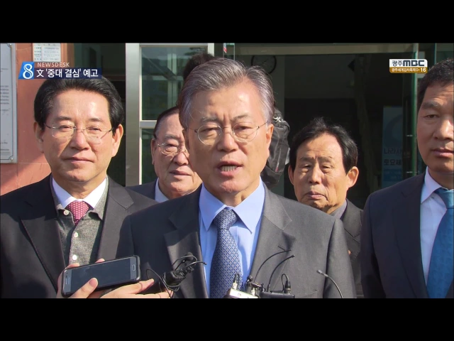 (앵커) 박근혜 대통령의 개각을 계기로 정치권에서도 하야 요구가 나오기 시작했습니다. 광주 전남을 찾은 문재인 전 대표는 '중대 결심'을 예고하면서도 하야 요구나 탄핵과는 애써 거리를 뒀습니다. 윤근수 기자 (기자) 국회 중심의 거국중립내각을 요구해온 더불어민주당 문재인 전 대표는 청와대 개각 발표는 국민에 대...