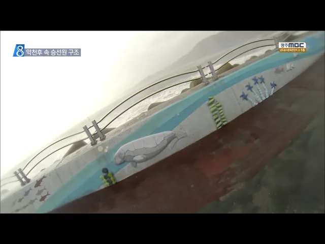 ◀ANC▶ 태풍 차바가 북상하면서 여수에서는 인명피해가 날 뻔한 아찔한 순간도 있었습니다. 바다에 빠진 유람선 승선원들을 구조하기 위한 일촉즉발의 상황을 김종수 기자가 취재했습니다 ◀VCR▶ 18호 태풍이 여수를 강타한 오늘 오전 8시 20분쯤. 엑스포 신항 부두에 정박해 있던 천3백톤급 유람선의 닻줄이 끊어지면...