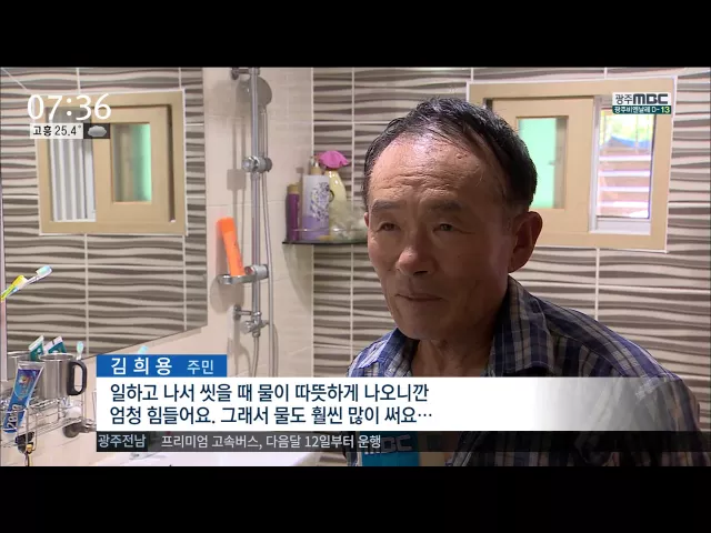 ◀ANC▶ 한 시골 마을 수돗물이 30도를 웃돌고 있습니다. 찜통더위에 지친 주민들은 한여름 따뜻한 수돗물 때문에 여간 불편하게 아닙니다. 문연철 기자가 보도합니다. ◀END▶ ◀VCR▶ 숨이 턱턱 막히는 찜통더위 때문에 잠시 농삿일을 접고 집에서 씻어보지만 더위가 가시질 않습니다. 보일러를 틀지 않았는데도 따뜻...