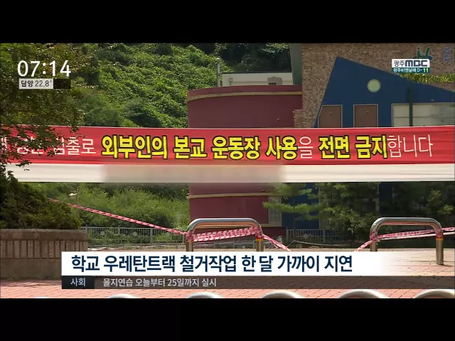 ◀ANC▶ 기준치 이상 납성분이 검출된 학교 우레탄 트랙 철거 작업이 지연되고 있습니다. 2학기 개학을 한 학교들은 운동장을 개방하지 못한 채 한숨만 짓고 있습니다. 김양훈 기자가 취재했습니다. ◀END▶ 목포의 한 중학교입니다. 2학기가 시작됐지만 학교 운동장 우레탄 트랙 진입금지는 여전합니다. ◀INT▶ 문윤희...