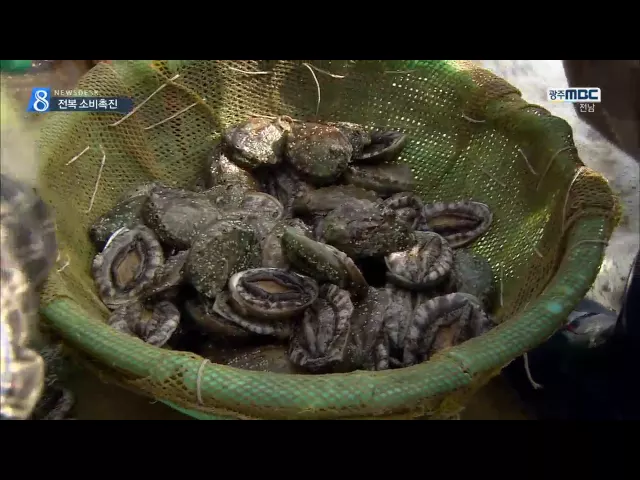 ◀ANC▶ 최고급 식재료로 꼽히는 전복이 요즘 경기 침체의 여파로 가격이 크게 떨어졌습니다. 그런데도 판매까지 부진한데요, 완도군이 전복 판촉활동에 팔을 걷어 부쳤습니다. 양현승 기자입니다. ◀END▶ ◀VCR▶ 소비자들이 가장 선호하는 전복은 10마리에서 15마리가 1킬로그램을 구성하는 크기입니다. 현재 5만5천 ...