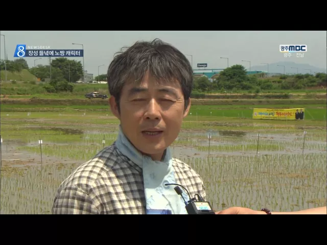 (앵커) 노무현 전 대통령을 상징하는 이른 바 '노짱 캐릭터'가 전남지역 들녘에 등장했습니다. 경남 봉하마을에서 첫 선을 보인 이후 7년 만에 '장성'까지 확대됐습니다. 이계상 기자.. (기자) 손모심기 작업이 한창인 장성의 한 들판에 특별한 문구가 아련하게 새겨져 있습니다. 20여 미터 상공에서 내려다보면 '깨어있는 ...