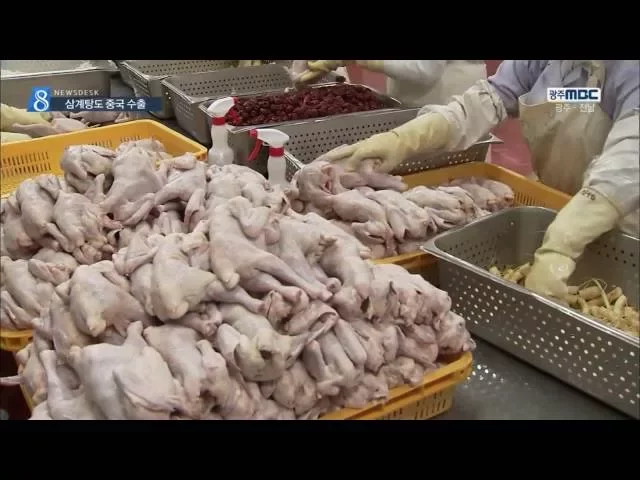 (앵커) 중국인들이 우리 삼계탕을 아주 좋아하죠.. 그래서 이달 안에 중국 수출을 시작하는데요.. 전남에서도 대륙의 입맛을 사로잡겠다며 수출업체와 사육농가가 만반의 준비를 마쳤습니다. 정용욱 기자입니다. (기자) 4천명의 중국인 관광객이 한강공원에서 삼계탕 파티를 벌입니다. 한류 드라마에 소개된 우리의 삼계탕...