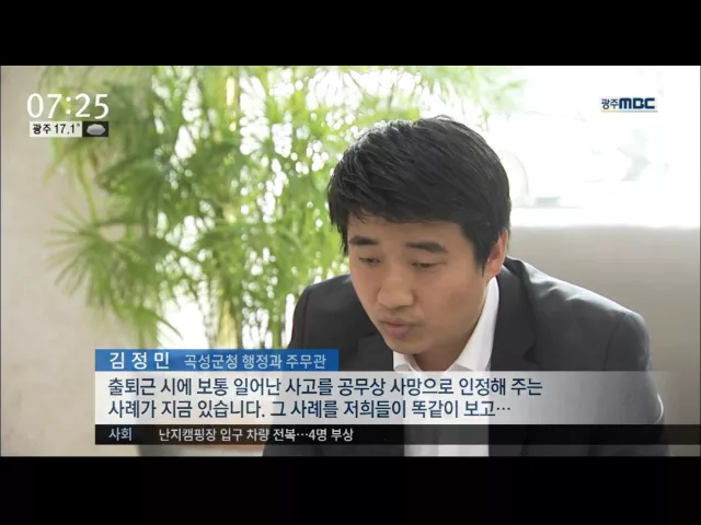 (앵커) 야근을 마치고 귀가하다 투신한 20대에 깔려 변을 당한 40대 공무원 가장 소식 어제 전해드렸는데요. 남겨진 만삭의 부인과 어린 자녀 소식이 알려지면서 공무원 가족을 돕기 위한 손길이 잇따르고 있습니다. 송정근 기자입니다. (기자) 아파트 20층에서 투신한 20대와 충돌해 갑자기 사망한 곡성군청 7급 공무원 양...