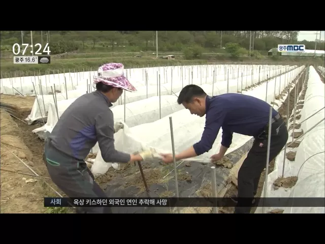 (앵커) 영농의 기계화에도 불구하고 밭농사를 짓는 데는 말 그대로 뼈빠질 정도의 노동력이 필요합니다. 농촌 일손이 갈수록 고령화되는 상황에서 노동력을 절감하는 기술은 농민들에게 큰 희망이 되고 있습니다. 이계상 기자.. (기자) 여느 고추밭과 달리 흰색 부직포가 두렁을 이루고 있습니다. 터널식으로 만들어진 시설...