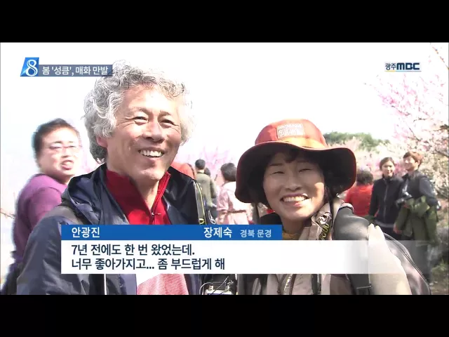 ◀ANC▶ 주말인 오늘, 봄기운 가득한 하루였는데요. 남도에는 하얀 매화가 가득 피었습니다. 꽃도 사람도 가득했던 매화 축제 현장을 권남기 기자가 둘러봤습니다. ◀VCR▶ (음악) 멀리 섬진강이 보이는 산등성이. 하늘에서 솜사탕이 내린 듯 나뭇가지마다 하얀 꽃이 피었습니다. 올해로 19번째를 맞은 광양매화축제. 봄...