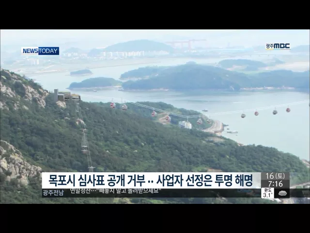 ◀ANC▶ 목포 해상케이블카 업체 선정과정을 두고 논란이 일고 있습니다. 타당성 용역에서 제시된 것과 다른 노선으로 건설될 예정이기 때문인데, 반대측 시민단체들은 원점에서 재검토 할 것을 요구하고 있습니다. 신광하 기자가 보도합니다. ◀VCR▶ 지난 12일 목포시 의회 관광경제위원회에서는 한바탕 소동이 빚어졌...