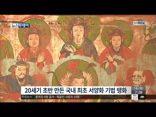◀ANC▶ 천년고찰 진도 쌍계사의 법당의 전면 해체 보수 공사 도중 그동안 숨겨져 있던 벽화가 대거 발견됐습니다. 20세기 초반 작품으로 추정되는 데 서양화에서 쓰이는 유화물감으로 그려져 있는 탱화들을 MBC가 단독으로 촬영했습니다. 양현승 기자입니다. ◀END▶ ◀VCR▶ 조선 숙종 시절인 1677년 지어진 진도 쌍...
