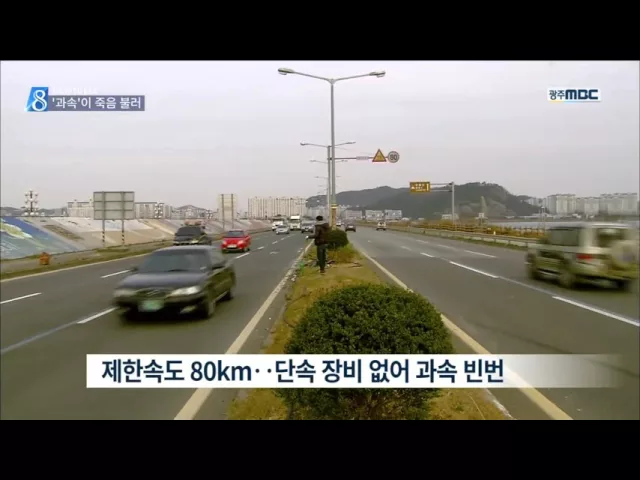◀ANC▶ 영산강 하굿둑 도로를 달리던 차량들이 부딪혀 4명의 사상자가 발생했습니다. 과속이 사고 원인으로 추정되는데, 이 도로는 야간에 과속 운전이 빈번한데도 단속장비 하나 없이 방치되고 있습니다. 김진선 기자가 취재했습니다. ◀END▶ ◀VCR▶ SUV 차량이 형체도 알아볼 수 없이 구겨지고 부서졌습니다. 바로...