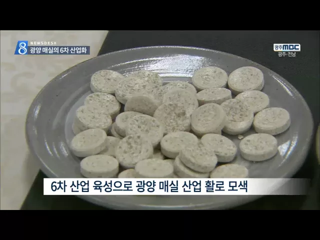 ◀ANC▶ 매실의 재배 면적이 지속적으로 증가하면서 지역의 매실 산업도 위기인데요. 광양시가 매실의 6차 산업화를 통해 경쟁력 확보에 나서 성과가 주목됩니다. 김주희 기자가 보도합니다. ◀END▶ ◀VCR▶ CG1] 광양 지역의 매실 재배 면적은 지난 2000년 160헥타르였던 것이 지난 해 1736헥타르로 10배 넘게 증가했...