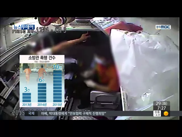 ◀ANC▶ 크고 작은 사고에 밤낮 없이 출동하는 119구급대원들이 폭행을 당하는 일이 끊이지 않고 있습니다. 가해자는 대부분 취객들로 대원들은 무방비로 당하고 있지만, 처벌은 솜방망이에 그치고 있습니다. 김진선 기자가 취재했습니다. ◀END▶ ◀VCR▶ 한밤중 병원 응급실에서 구급대원들이 소란을 피우는 사람들을...