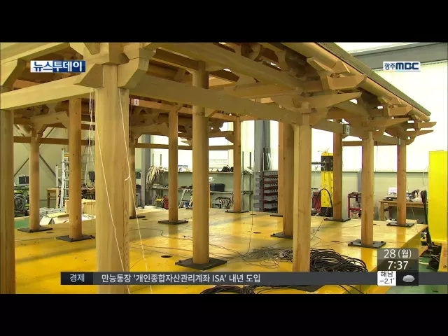 ◀ANC▶ 최근 전북 익산에서 발생한 지진으로 놀라신 분들이 많았습니다. 요즘은 내진 설계를 많이 하지만 오래 전에 지은 문화재는 사실상 지진에 무방비 상태입니다. 세계문화유산조차 속수무책입니다. 안준철 기자가 보도합니다. ◀END▶ 국내에서 유일한 한국전통문화대학교의 전통건축공학연구소입니다. 지진을 비롯...
