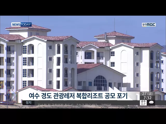 ◀ANC▶ 전라남도와 여수시가 역점 사업으로 추진했던 경도 복합리조트 사업도 무산될 위기에 놓였습니다. 정부 공모 기한(27일)을 하루 앞두고 외국자본 유치에 실패했기 때문입니다. 김종태 기자가 취재했습니다. ◀END▶ 전라남도가 여수시와 함께 야심차게 추진했던 경도지구 복합리조트 사업 투자 규모만 1조원 이상...