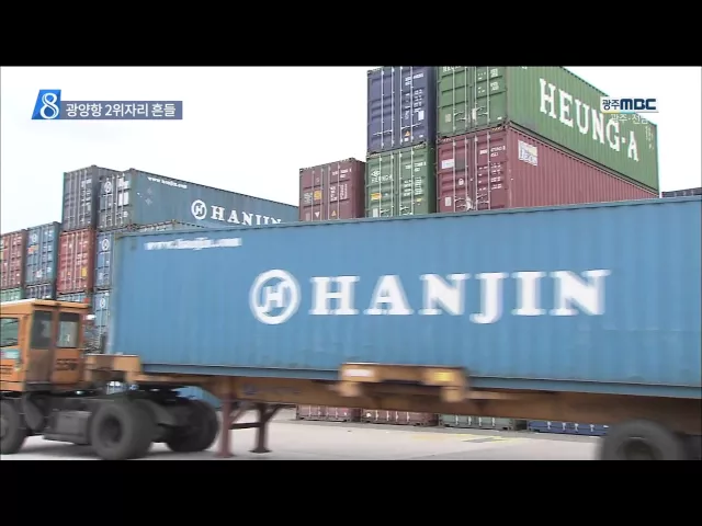 ◀ANC▶ 광양항이 개항 이래 17년 동안 지켜왔던 컨테이너 물동량 2위 자리를 인천항에 내줄 위기에 처했습니다. EU와 러시아 지역 불황에 따른 수출 감소가 물동량 감소의 주요 원인 입니다. 김주희 기자가 보도합니다. ◀END▶ ◀VCR▶ 지난 달 광양항의 컨테이너 처리 물동량은 인천항에 2만7천TEU 뒤진 18만 7000TEU...