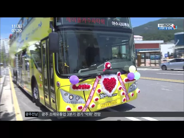 ◀ANC▶ 지역에서는 처음으로 지붕 없는 2층 관광버스가 들어와 여수 시내를 달리기 시작했습니다. 이국적인 멋을 느낄 수 있다는 점때문에 관광객들의 반응은 아주 좋습니다. 김종태 기자가 취재했습니다. ◀END▶ 지붕 없는 2층 버스가 여수 시내를 가로지릅니다. 버스 2층에 올라서면 거리 주변과 바다 풍경이 한눈에 ...