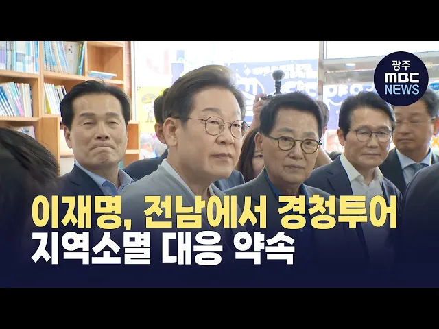 (앵커)제21대 대통령 선거의공식 후보 등록이 마무리 되며대선 레이스가 본격 시작됐습니다.더불어민주당 이재명 대통령 후보는전국 소도시를 찾아 민심을 듣는'경청투어'의 마지막 일정으로 전남을 찾았습니다.안준호 기자가 취재했습니다.(기자)해남군의 한 서점으로 더불어민주당 이재명 대통령 후보가 들어섭니다.점주...