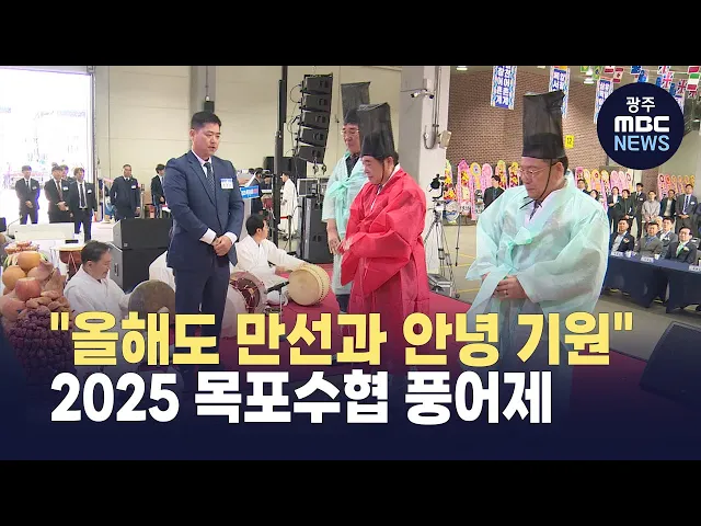 (앵커)바다를 터전 삼아 살아가는 어민들이 한 해의 풍어와 안녕을 기원하는 '풍어제'가목포에서 열렸습니다.어족자원 감소와 해양환경 변화로어려움은 커지고 있지만어민들은 올해도 만선을 기원하며 희망을 꿈꿨습니다.박종호 기잡니다.(기자)정성껏 차린 제상 앞에 절을 올립니다.한 해의 만선과 어업인들의 안녕을기원...