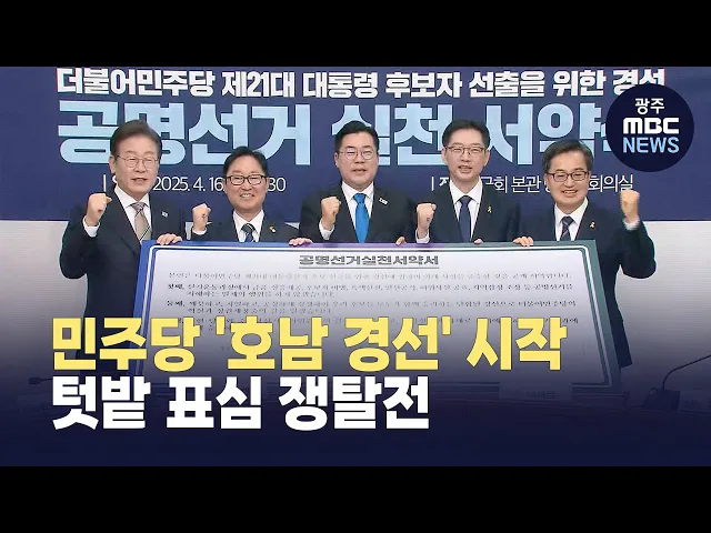(앵커)민주당이 어제(23)부터 나흘 간의 일정으로 호남권 순회 경선에 들어갔습니다.호남지역의 민심이수도권 경선에도 영향을 미칠 수 있어 표심을 겨냥한 후보들의 각축전은 더욱 치열할 것으로 보입니다.문형철 기자입니다. (기자)민주당의 텃밭이자전통적 지지층 민심을 확인할 수 있는호남지역.충청과 영남에 이어, 광...
