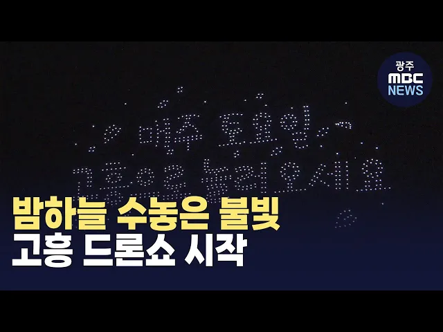 (앵커)고흥 밤하늘을 수놓는 드론쇼가 시작됐습니다.올해는 녹동항뿐만 아니라고흥읍에서도 드론쇼가 열리는데요.수백 대의 드론이 수놓은 장관,김단비 기자와 만나보겠습니다.(기자)하늘을 무대 삼아 수백 대의 불빛이 떠오릅니다.꽃가지를 입에 문 제비가 하늘을 날고,씨앗을 심은 땅에서는 꽃이 자랍니다.그러더니 순식...