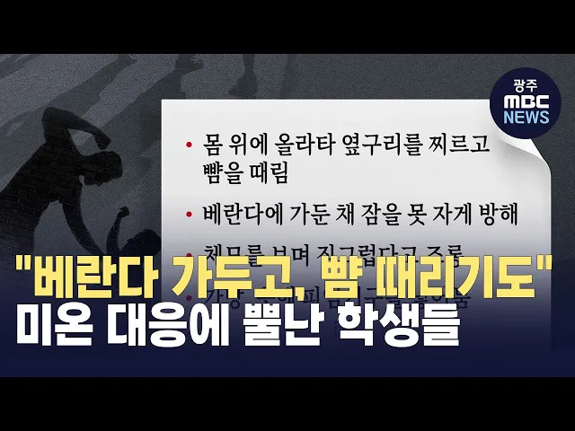 (앵커)한 대학교 기숙사에서 한 달 넘는 가혹행위가 이뤄진집단 괴롭힘 사건이 발생했습니다.하지만 가해 학생들이 학교로부터 받은 처벌이'일주일 외출 금지'에 그치면서 학생들 사이 분노가 커지고 있습니다.안준호 기자가 취재했습니다.(기자)목포해양대학교 온라인 커뮤니티에 올라온 게시물입니다.학내 기숙사에서 '집...