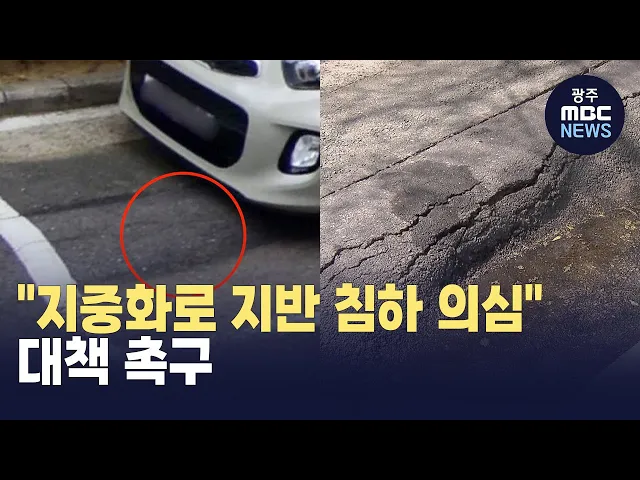 (앵커)순천의 한 아파트에서 실외 주차장 일부가 내려앉는 등지반 침하 현상이 생겼습니다.주민들은 단지 옆 도로에서 진행 중인 전선 지중화 공사를 원인으로 지목했는데, 순천시와 한전도 사태 파악에 나섰습니다.유민호 기자입니다.(기자)순천시 조례동의 한 아파트입니다.오가는 차량이 방지턱 넘듯 흔들립니다.아파트 ...