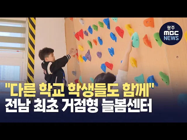 (앵커)수업이 끝난 초등학생들이 집에 가지 않고 학교에 남아 돌봄 교육을 받는 모습은이제 익숙한 풍경이죠.전남의 과밀 학교 학생 수용과 학부모들의 돌봄 공백을 완화할첫 거점형 늘봄센터가 목포에 문을 열었습니다.안준호 기자입니다.(기자)정규수업이 끝난 초등학교에아이들의 웃음소리가 떠나지 않습니다.클라이밍 ...