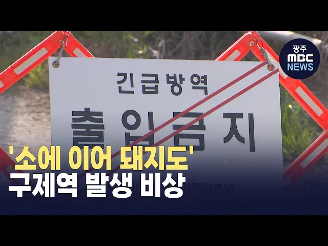(앵커)무안의 돼지농장 2곳에서 구제역이 발생했습니다.지난 소 구제역으로 인한이동제한 해제검사 과정에서바이러스가 또다시 발견된 건데 잠잠했던 구제역이 또다시 나타나면서방역당국은 말그대로 비상입니다.박종호 기자가 취재했습니다.(기자)무안의 한 돼지농장 입구에차량과 사람의 출입을 금지하는차단봉이 세워졌...