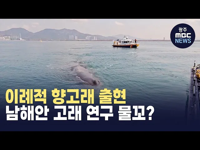 (앵커)최근 살아있는 향고래가육지 가까이에 접근한 일이 있었죠.전문가들조차 당황할 만큼이례적인 현상이었는데요.이번 일을 계기로 남해안 고래 연구가 본격화할 수 있을지 주목됩니다.최황지 기자입니다.(기자)향고래는 지난 4일 광양항 인근의 해상에서 최초로 발견됐습니다.이후 연안을 맴돌던 향고래는여수산단 인근...
