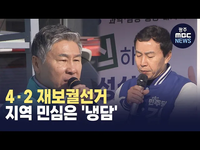 (앵커)전남 동부권에서도두 곳의 선거구에서 기초의원을 선출하게 되는데지역 유권자들의 반응이 어느 선거 때보다 냉담합니다.지역 선관위에서도 투표율 제고를 위해 비상이 걸렸습니다.김주희 기자가 보도합니다. (기자)광양시 지역에서 가장 많은 인구가 밀집해 있는 광양시 다 선거구.3명의 후보들은 선거 막바지 유세...