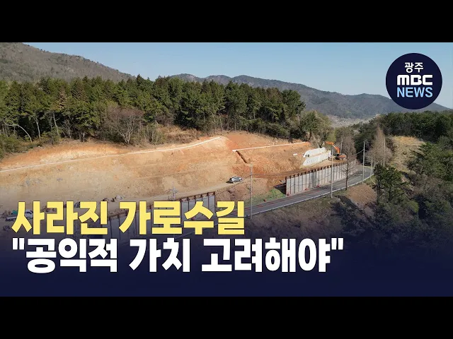 (앵커)여수의 대규모 가로수길이 도로 확장 사업으로 사라지면서시민들이 아쉬움을 토로하고 있습니다.반면, 또 다른 마을에서는나무 한 그루를 지키기 위해온 주민이 나서 눈길을 끌고 있습니다.최황지 기자입니다.(기자)녹음이 우거졌던 바다 옆 산길, 지금은 맨땅이 훤히 드러났습니다.곧 남해로 가는 해저터널이 개통되...