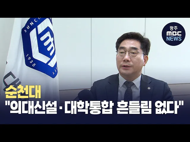 (앵커)정부의 의대 정원 확대 방침이무산될 가능성이 커지면서전남 국립의대 신설에도 빨간불이 켜졌습니다.국립순천대학교는 목포대와 통합을 통해의대를 신설하겠다는 계획인데요.대학의 생존이 걸린 데다지역민의 숙원인 만큼,흔들림 없이 통합 작업에 속도를 내겠다는 방침입니다.유민호 기자입니다.(기자)정부는 의대...