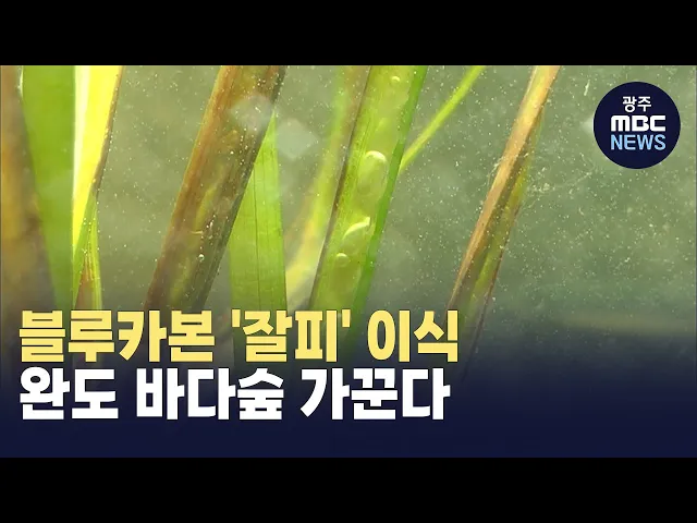 (앵커)바닷속에서 자라는 식물 '잘피'를 아시나요?해양 생물들의 보금자리 역할을 하는 만큼 바다 생태계 복원에도 필수적인데요.완도군이 블루카본으로 인증받은 잘피를 바다에 이식하는 등 지속적으로 확대하고 있습니다.박종호 기잡니다.(기자)IPCC, 기후변화에 관한 정부간 협의체가 블루카본으로 인정한 잘피.나무보다...