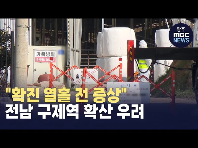 (앵커)전남 구제역 첫 확진 농가에 대한역학조사 결과 확진 열흘 전쯤 이미 구제역 증상 발현이 시작됐던 것으로 나타났습니다.잠복기에도 비말을 통해 가축간 감염이 가능할 정도로 높은 전파력을 지닌 구제역 바이러스의 특성상추가 확산을 피할 수 없다는 전망도 나옵니다.서일영 기자가 취재했습니다.(기자)전남 첫 구...