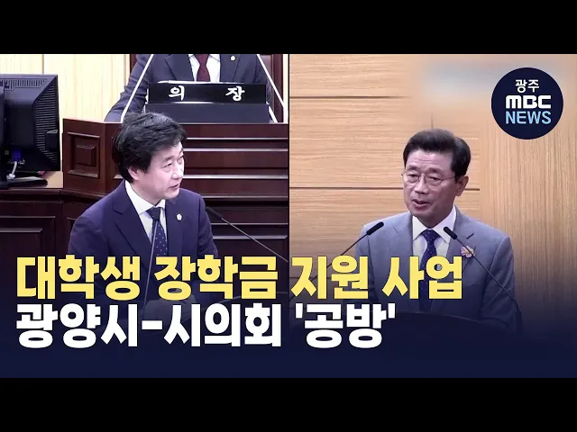 (앵커)광양시가 관내 거주하는 모든 대학생들에게 장학금을 지원하는 복지 사업을 추진하고 있습니다.그런데 이와 관련해시의회가 문제점을 제시하면서 시 집행부와 공방을 벌이고 있는데요시 행정과 의회 간 갈등 분위기가 표면화하고 있습니다.김주희 기자가 보도합니다. (기자)광양시의회 제335회 임시회 시정질의.광양...